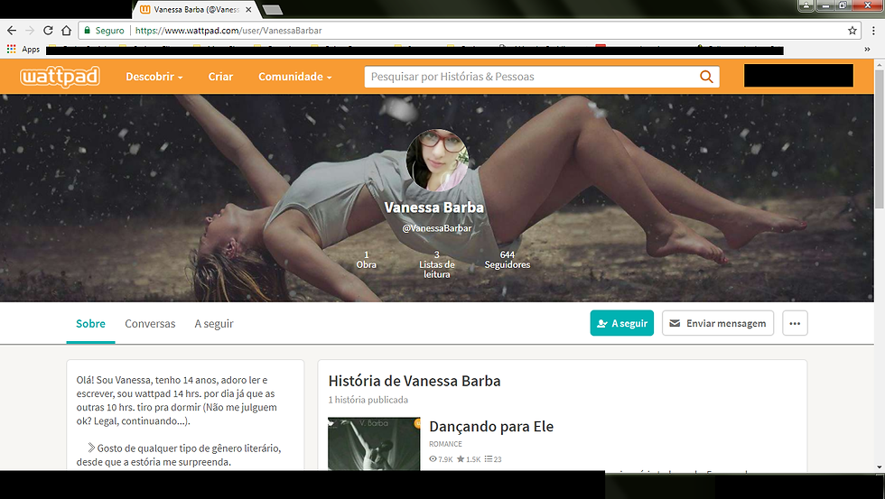 Com mais de 644 seguidores e 7,9 mil leituras, a autora Vanessa Barba (@VanessaBarbar) já conseguiu encantar a um grande número de usuários com a sua obra "Dançando Para Ele" onde nos comentários só se encontra elogios em relação a seu talento nato. E hoje o Papo de Escritor traz para você, uma entrevista exclusiva com essa garota que, além de talentosa, é muito carismática. Acompanhe: